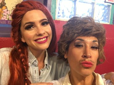 Being part of this comedy troupe has changed my life. Chico's Angels was created and written by Oscar Quintero (Kay Sedia) along with Kurt Kohler (director). The angels, Kay Sedia, Chita Parole (Ray Garcia) and Frida Laye (Danny Casillas), began performing together in 2003 with their first episode. Since then, they have written 5 episodes all performed LIVE at the infamous Cavern Club Celebrity Theater in Silverlake. I joined in episode 2 impersonating Charo. After 7 years, word got back to THE CHARO and she had a blast! Here we are dancing after the show!